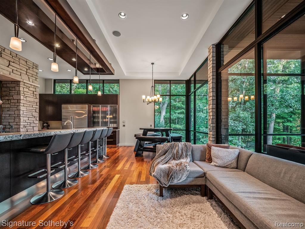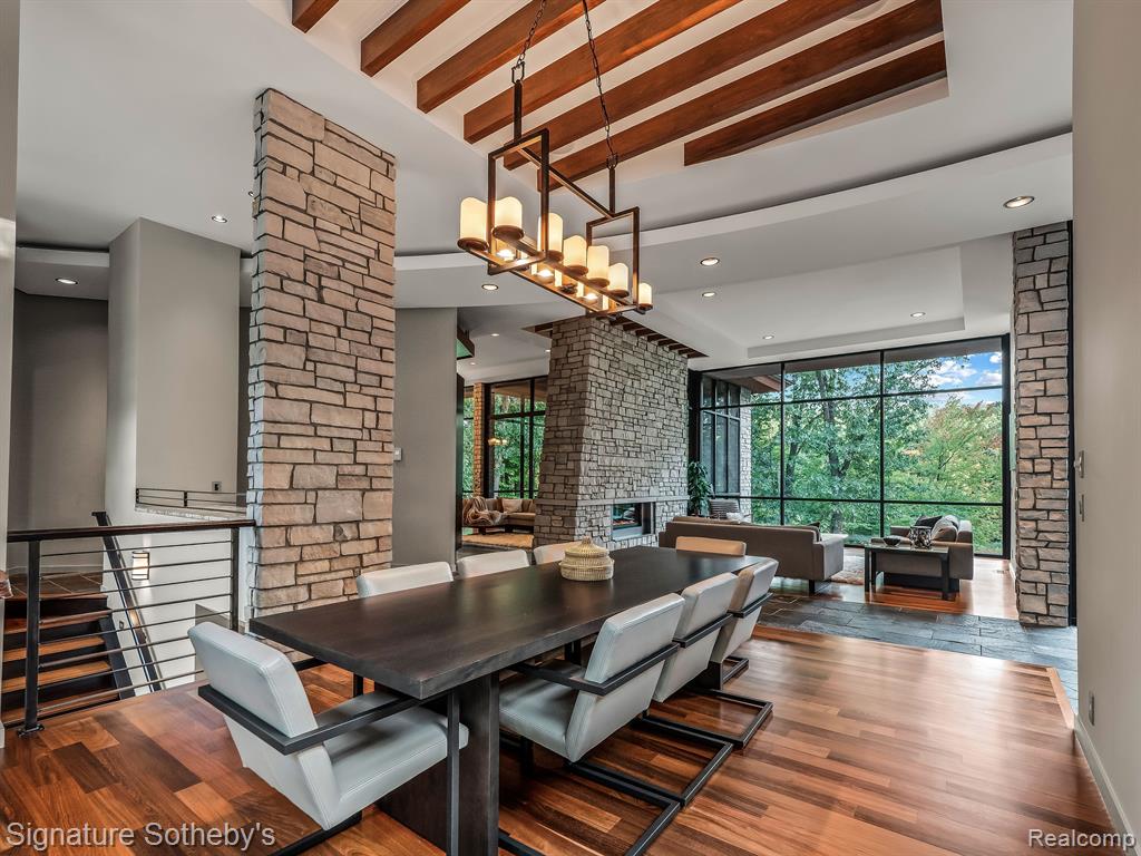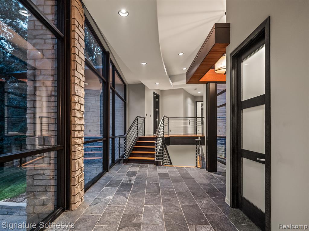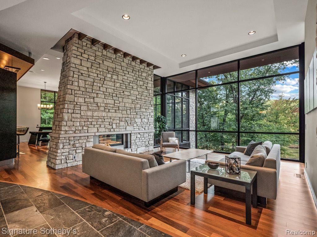 The award winning custom contemporary home is perched in a once in a lifetime private setting yet is adjacent to the top rated high school in the state The International Academy. Unparalleled elevated views of nature abound from all 7000+ square feet of living space. The extensive list of premium features and materials includes a full stone exterior, commercial floor to ceiling windows, standing seam metal roof, premium appliances, custom cabinetry, heated floors, and much more. The award winning prairie contemporary AZD design extends to the integrated 2000 square feet of garage oasis including a custom finished storage/retreat level ideal for the vehicle enthusiast. A rare “best of both worlds”, the surrounding area boasts extensive parks and recreation all while being centrally located to airports, shopping, restaurants, and metro centers. |