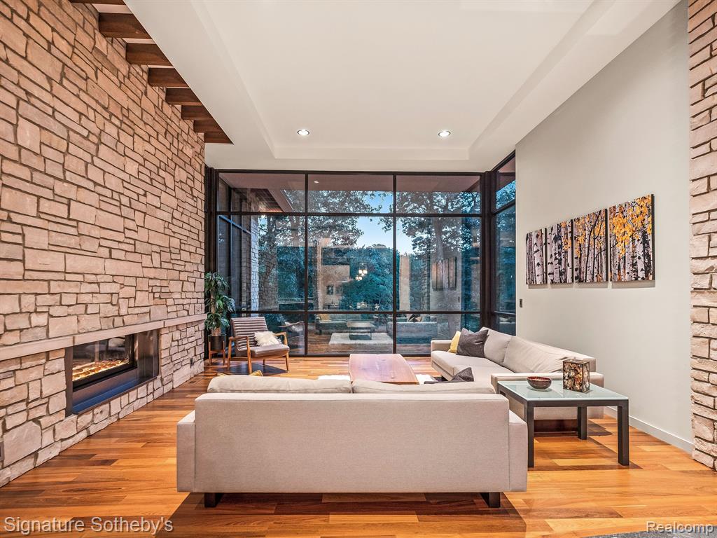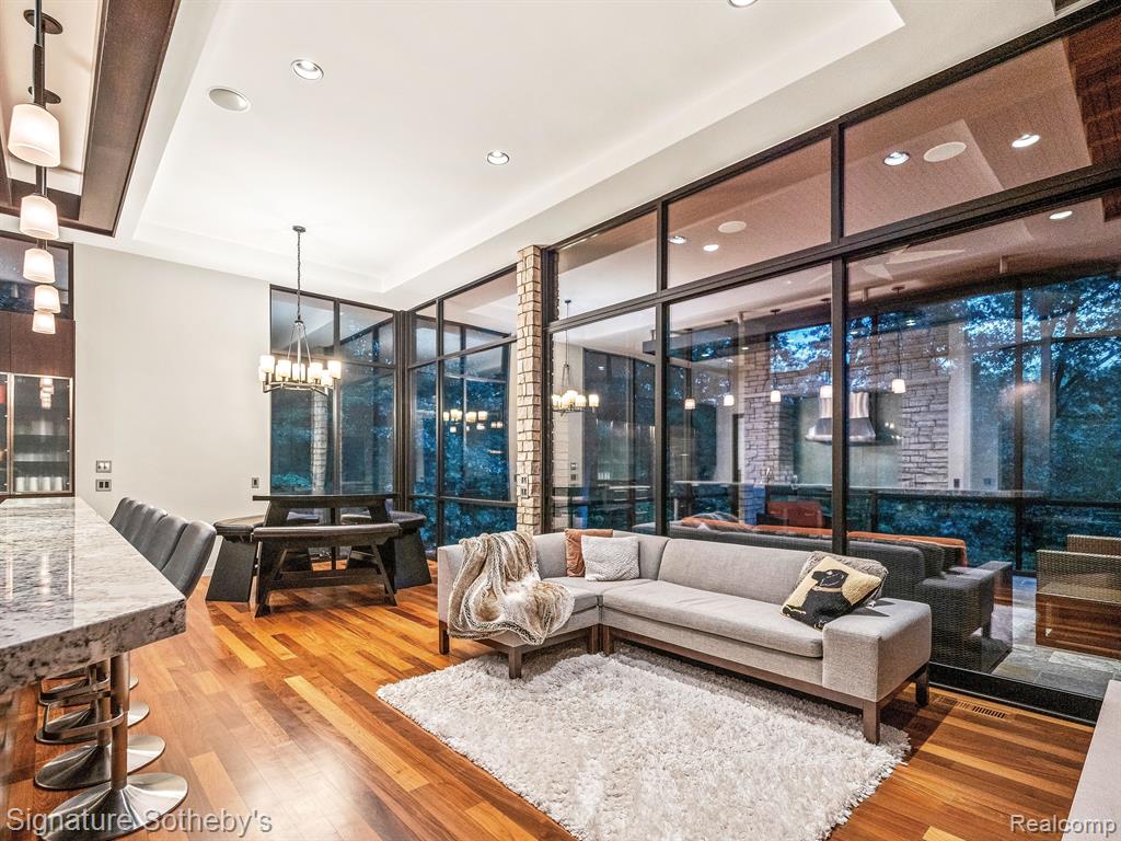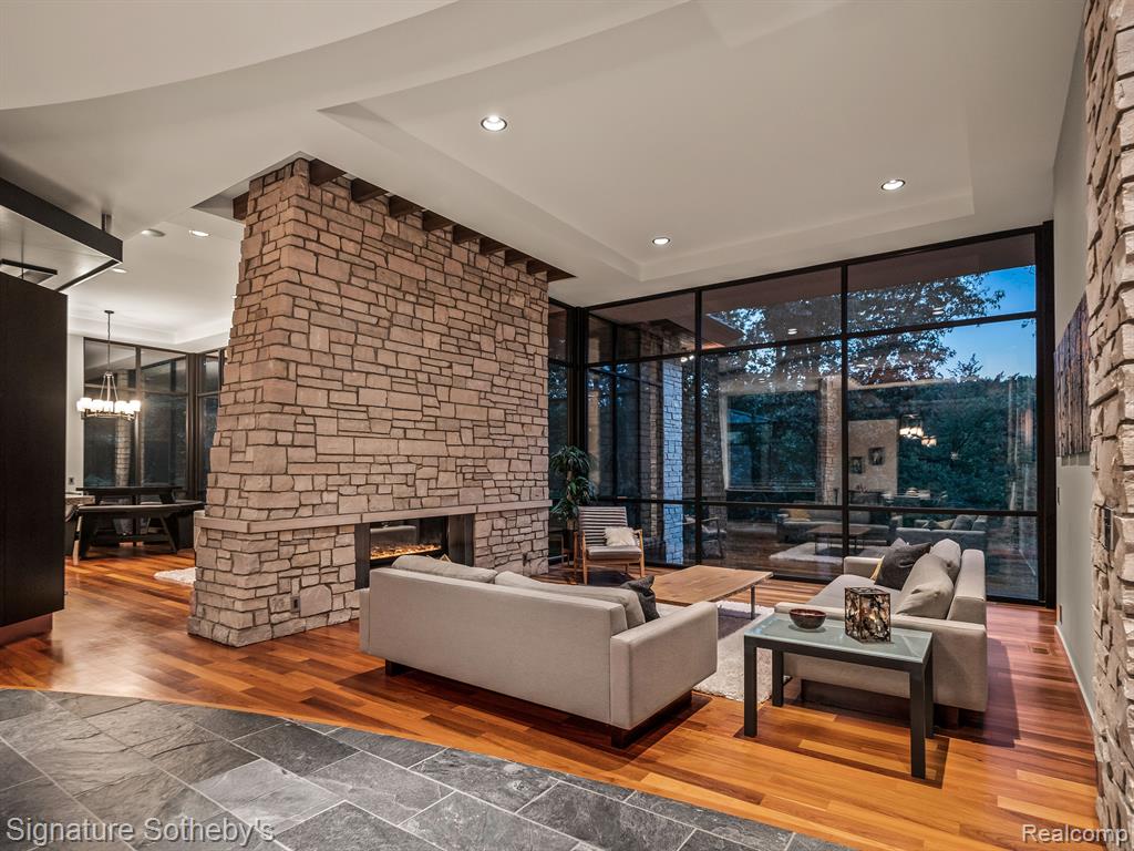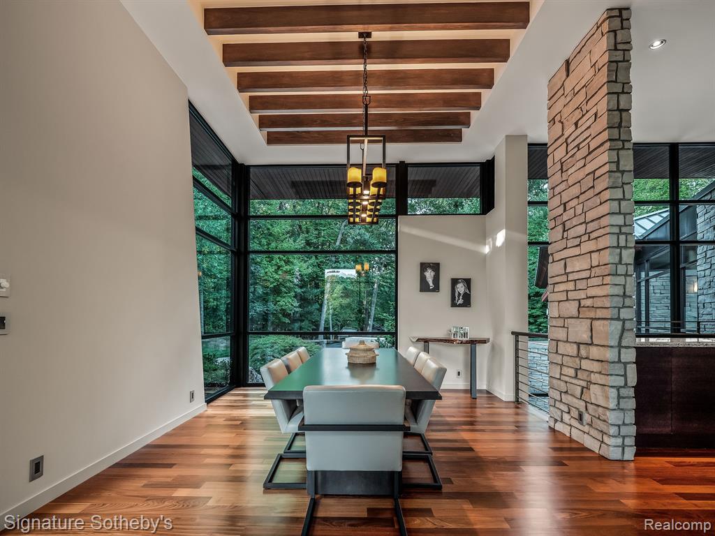 The award winning custom contemporary home is perched in a once in a lifetime private setting yet is adjacent to the top rated high school in the state The International Academy. Unparalleled elevated views of nature abound from all 7000+ square feet of living space. The extensive list of premium features and materials includes a full stone exterior, commercial floor to ceiling windows, standing seam metal roof, premium appliances, custom cabinetry, heated floors, and much more. The award winning prairie contemporary AZD design extends to the integrated 2000 square feet of garage oasis including a custom finished storage/retreat level ideal for the vehicle enthusiast. A rare “best of both worlds”, the surrounding area boasts extensive parks and recreation all while being centrally located to airports, shopping, restaurants, and metro centers. |